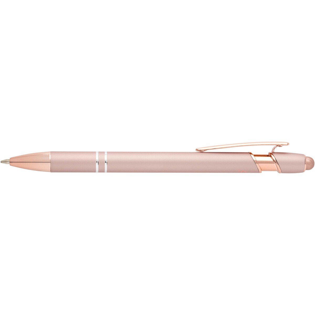 Kuličkové pero Nanna s povrchovou úpravou z růžového zlata má tělo vyrobené z recyklovaného hliníku a dotykový stylus vyrobený ze silikonu. Snižuje také množství odpadu na skládkách a pomáhá šetřit přírodní zdroje s cílem snížit emise skleníkových plynů. Barva inkoustu: Černá. Délka psaní: 800 metrů. Rozměr hrotu: 1,0 mm.